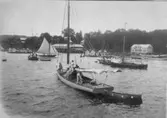Text på kortet: "Regattadags. Gustafsberg omkring 1900. Foto: Maria Lundbäck".
