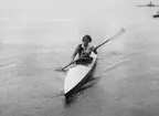 Kanotutfärd. Två män i paddelkanoter.