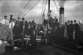 Passagerare utanför Finlandsbåten.