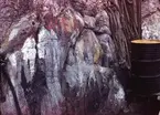 Kolbengtserödsjön med Funneshultskniparna och Trynet i Vassbovik i fjärran. Gården Hoven bakom dunge till höger i bild, gården Kolbergtseröd snett vänster på andra sidan sjön.