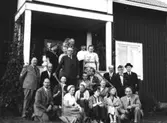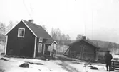 Sittande längst ner "Nitaho-Jussi" Johannes Johansson, bakom honom Holger Jansson. Stående på bortre verandan Halvar Halvarsson.