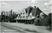 Övervåningen brann 1890 och ersattes med en fullständig övervåning i sten Stationen anlades 1859 och öppnades 1860. 1880 eldhärjades byggningen, som därefter ersattes av den nuvarande. Renovering 1945. Mekaniskt ställverk 1902. Lokalbangård m 3 spår 1925. Persontunnel 1922-23, i bruk först 1926