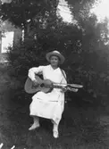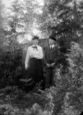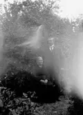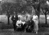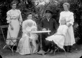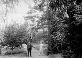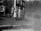Bröllop. Brudpar och bröllopsgäster. Bostadshus.