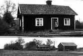Tulebo Nordgård 1:6 "Mossen", "Helgessons" 1980-tal. Boningshus från cirka 1880. Uthus och smedja ligger till höger. Vägen är Tuleboängsväg. Huset revs cirka år 2000.