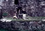 Text på kortet:"Valla kyrka i Göteborgs stift. Invigd 1861. Ersatte tidigare kyrka från 1200-talet. Hvitfeldska gravkoret är sammanbyggt med kyrkan i dess östra ända. Där vilar Margareta Hvitfeld, maken Tomas Dyre samt tre barn".