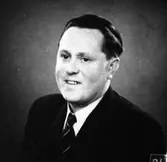 Porträtt av tre män, mannen i mitten Olof Olsson