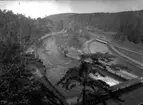Vy över Ol-Ers (Lenninge 2:20). I förgrunden gamla landsvägen och järnvägen, till höger grindvaktarstugan vid övergången.