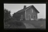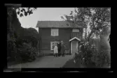 "Bostad till Gimmersta kvarn Ellen och Karl Pettersson (förkörare)" En familj vid sitt hus.