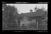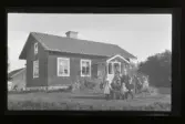 "Girtorpstugan, Väsby." En familj framför sitt hus.