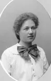 Birgitta Helena Petersson. Född 24 februari 1876 i Halltorp, Gärdhem. Död 10 januari 1956 i Ingelsängens Skattegård 1:29 (Ekelund) i Upphärad (P). Fotot förmodligen taget när hon gick på Folkskoleseminariet i Skara 1903. Hon blev senare folkskollärare i Grängesberg från c:a 1916.