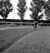 Stadion, Stockholm. 2000-08-30, AS. Stadion, idrottsanläggning på Östermalm i Stockholm, byggd till OS 1912. Byggherre var Sveriges centralförening för idrottens främjande, och arkitekt var Torben Grut, som här skapade ett monument inom den "nationella" tegelarkitekturen med associationer till medeltida ringmurar. S. är byggnadsminne.