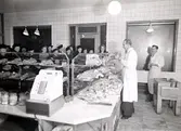 Interiör från Konsumbutiken i kvarteret Koljan. På bilden ser vi butikschefen Märta Andersson.
