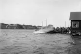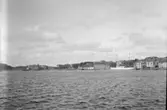 Nordisk Fiskeriutställning i Marstrand 1904. En lång rad båtar vid kajen längs Hamngatan.