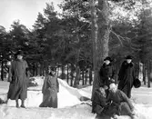 Utflykt i Gävlebukten. Elna Brundins systrar med uppvaktande kavaljerer.