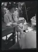 Ett sällskap ungdomar sitter och fikar utanför familjen Morthensens villa Solveden, Djursholm. Till vänster Sven Morthensen.