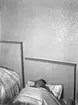 Rumsinteriör, liggande man. Karl Karlsson, "tagen på sängen".