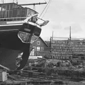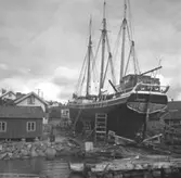 Enligt senare noteringar: "Segelbåt på trallen vid slipen i Uddevalla hamn"
