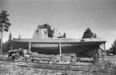 Sjösättning av motorbåten TA TA vid Fröbergs Båtvarv. (Brunnen och ombyggnad år 1933 nuv. namn DAGUN