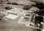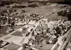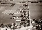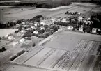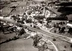 Flygfoto över stationen Stationen anlagd som hållplats 1905, blev håll- och lastplats 1936 och station 1946. Det nya stationshuset, envånings i trä, uppfördes 1942
