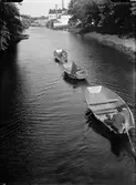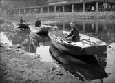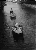 Två män paddlar kanot i Fyrisån, Uppsala 1934