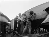 Man vid segelbåt, sannolikt vid varvet, Kungsängen, Uppsala