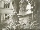 "Antonssons blandning" skyltning av diverse artiklar typ flaggstångskulor, rengöringsmedel, kaffekittel, i skyltfönster hos Edwin Andreassons"
