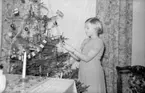 Rumsinteriör med julgran, tre flickor. Från vänster: Linnéa Olsson, Gunborg Lilja och Dagmar Johansson.