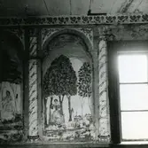 Dekorerad, ljus kolonn med sockel. Gunnebo slott, 1930-tal.