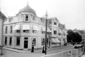 Folkets hus i Nybro. I byggnadens högra del låg vid tiden för fotot Konditori Mecka. Senare fanns en kinarestaurang här.