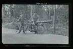 Hjälmsätrakabeln. Stolptransport med släpvagn. Ur albumet Kabelarbetet Hjälmsälra (Hjälmsättra) - Norrtälje - Finnviken utfört under sommaren 1928.