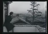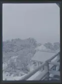 "Torne lappmark. Jukkasjärvi socken.Talma lappby. Teckning av Johan TuriL.A. 853 nr. 2". En man i samisk dräkt på skidor med två renar i lina framför bebyggelse med två timrade hus och en kåta.