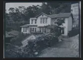 Flygfotografi som visar bebyggelse i Stretered, Kållered, i Mölndals kommun. Vy mot öster. Närmast ses kamhuset Backegården, Stretered 1:106, med gatuadress Ängbackevägen 13-19. I bakgrunden skymtas nyare bostadsbebyggelse vid samma gata. Byggnadsdokumentation inför rivning. Fotografi taget av Mattias Larsson, Borohus AB, den 23 augusti 2021.