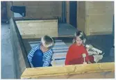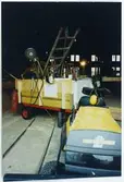 Vägstation R4 Undenäs. Förrådsbyggnad. Upplag av cementringar, virke.