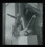 Skulptören Carl Eldhs byster föreställande poeten Gustaf Fröding och författaren August Strindberg, som köpts in till Folkskoleseminariet, Seminariegatan 1, Uppsala 1940