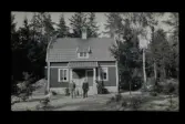 "Furuborg, Hilda o Oskar o Ivar f. 1880, 1880, 1903." En familj framför sitt hus.