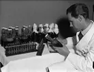 "Personalen på Ulleråker lämnar blod till armén" - läkaren Thore Gustafsson med blod som personal på Ulleråkers sjukhus lämnat, Uppsala oktober 1941