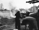 Pyromanbränderna i Kopparberg den 19 juni 1961. Brandsläckning.