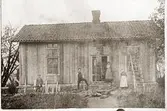 GRUPP ARBETARE PÅ EN LADUGÅRDSBYGGE.