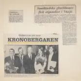 "Småländska glasblåsare fick stipendier i Växjö". Fr.v.: Kjell Andersson (Strömbergshyttan), Bengt Heintze (Kosta), Henry Bjerding (Orrefors), dessutom Ulla Kjellenberg (Reijmyre) och Tommy Stark (Lindshammar). Artikel ur Kronobergaren, 11 dec 1972.