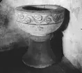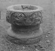Kyrkans medeltida dopfunt i prästgårdens trädgård. Sedemera restaurerad och placerad i kyrkan.