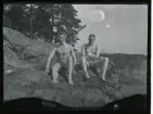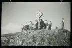 Ett sällskap dricker kaffe på klippor vid en utflykt.