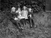 Text till bilden: "Barnporträtt i det fria. Fossums trädgård"-