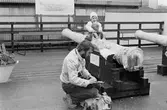 Kanonsalut med vasakanon utanför rådhuset i Bremen. Lars-Åke Kvarning, förste intendent och Olle Nyman, från SAS åkte på utlandsturné för att demonstera hur en Vasa kanon fungerar.