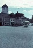 Text till bilden: "Torget med Carl X Gustafstatyn och rådhuset".