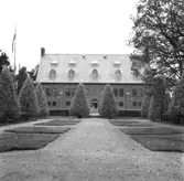 Skara. Stadsträdgården. Västergötlands Museum. Omläggning av taket år 1962.