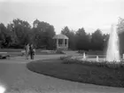 Järnvägsparken i Ljungby, 1938. Järnvägsstationen skymtar mellan träden.