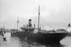 Lastångfartyget Thetis byggd år 1884 på O. A. Brodins varv i Gävle. Text på vykortet som är stämplat i Hull, England "Hälsningar från "Thetis". Till "Fröken Ingrid Lagerholm, Gröndal, Gefle, Sweden".