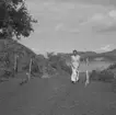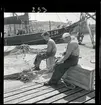 Gunnar Woldenius som byggt båten sitter ombord. Bredvid hans kusin Leif Woldenius
