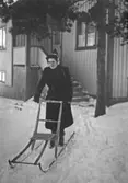 Anna och Erik Eriksson rastar på en klippa i sjön under sparkstöttingsåkning på Hästefjordens is.