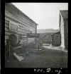 "Tegelbruket, Axels mor och far vattnar kon." Fotografens föräldrar, Fredrik Vilhelm Eriksson (f.1854) och Anna Maria Larsdotter (f.1856) vid en pump.